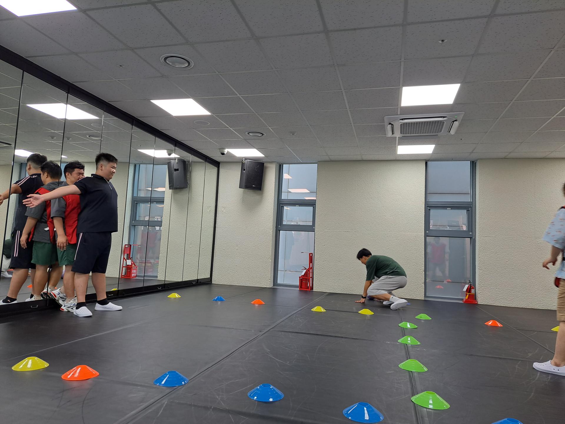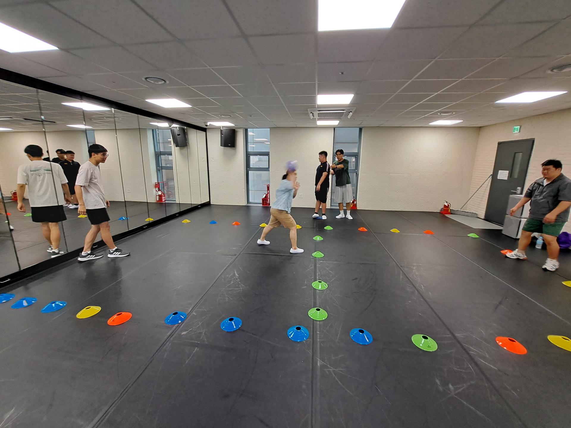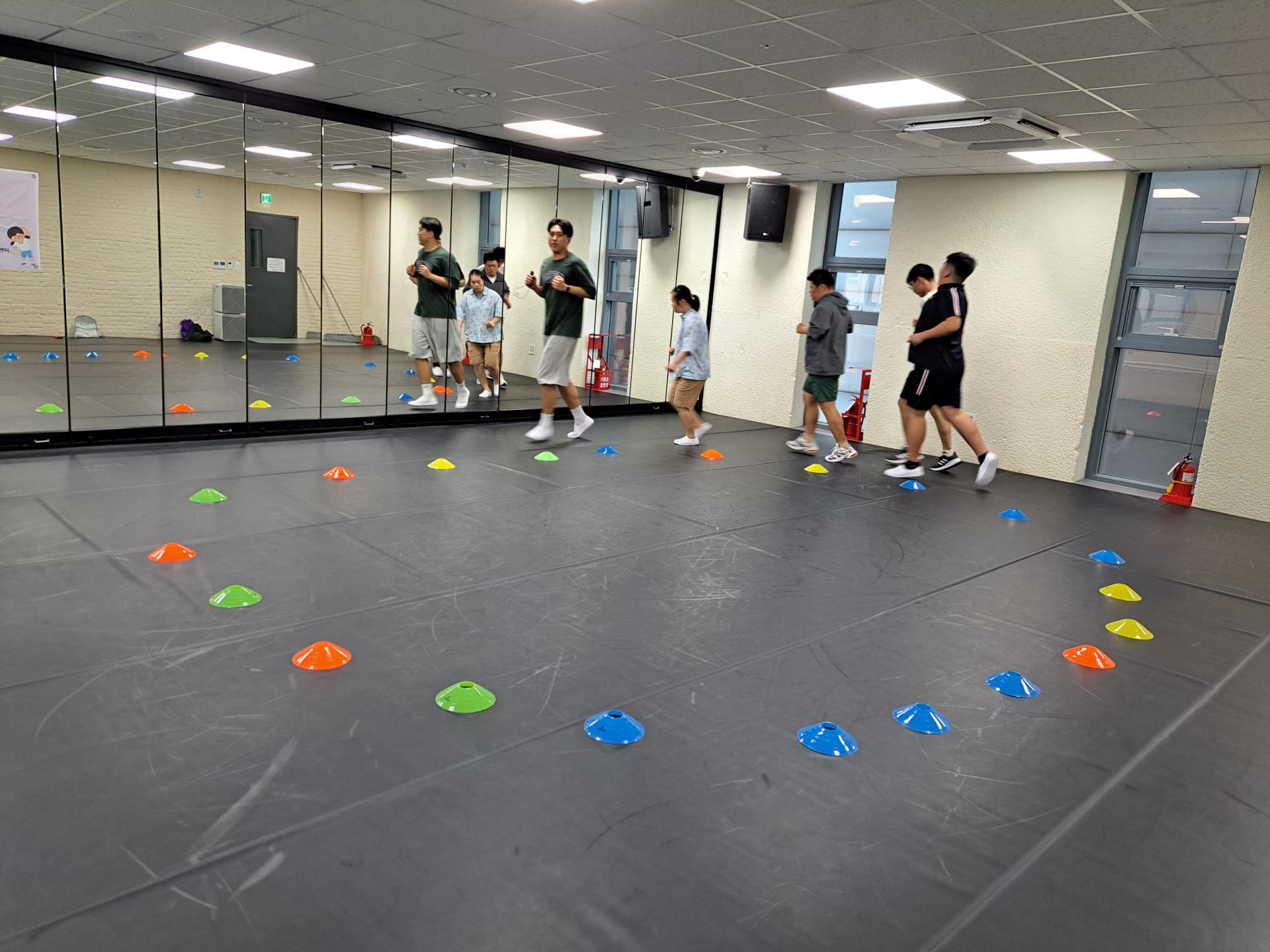 다양한 자세에서 왕복 달리기를 진행하였습니다.