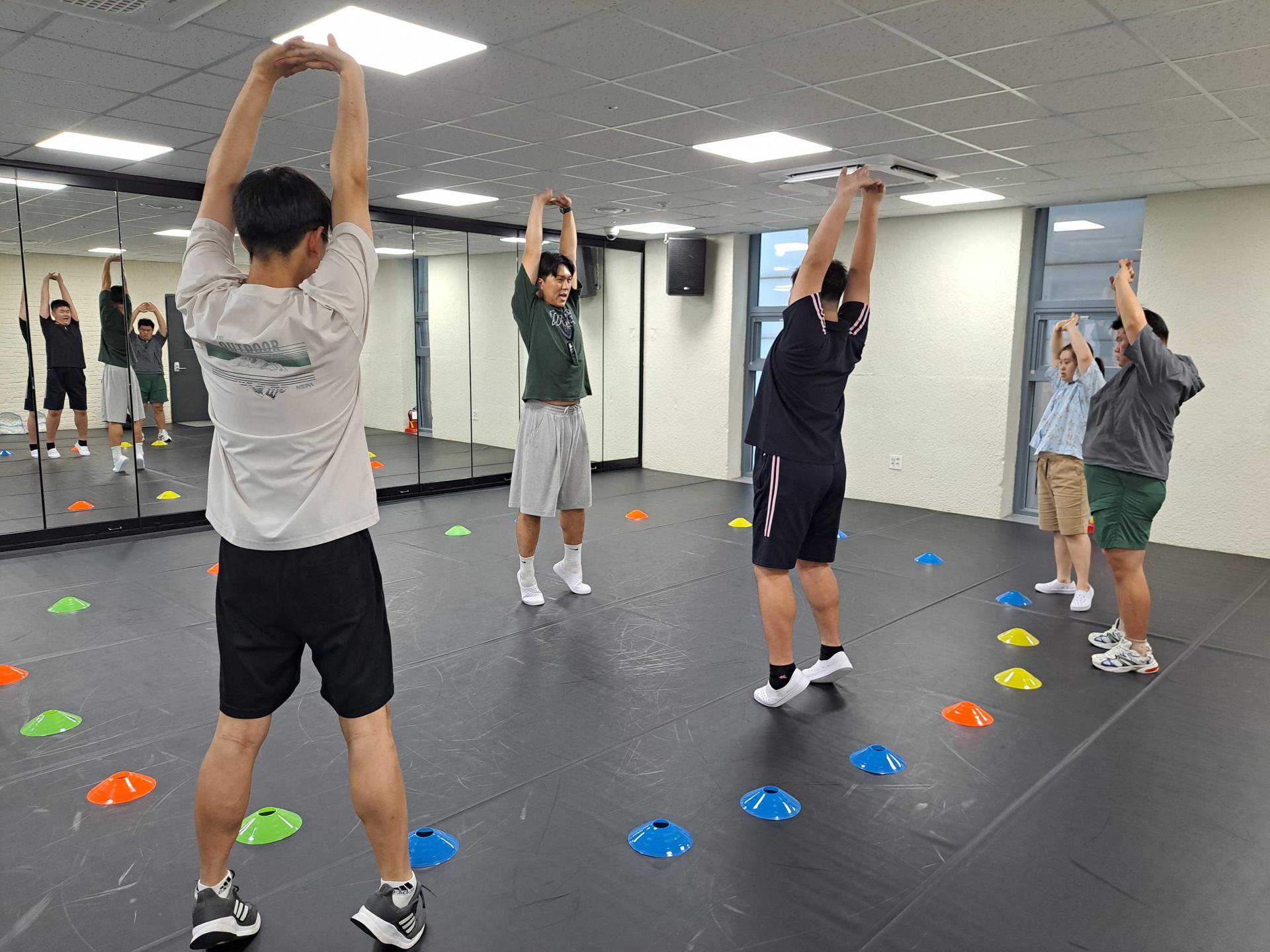 오늘도 우리는 가벼운 걷기부터 스트레칭 체조로 프로그램의 문을 열어봅니다.