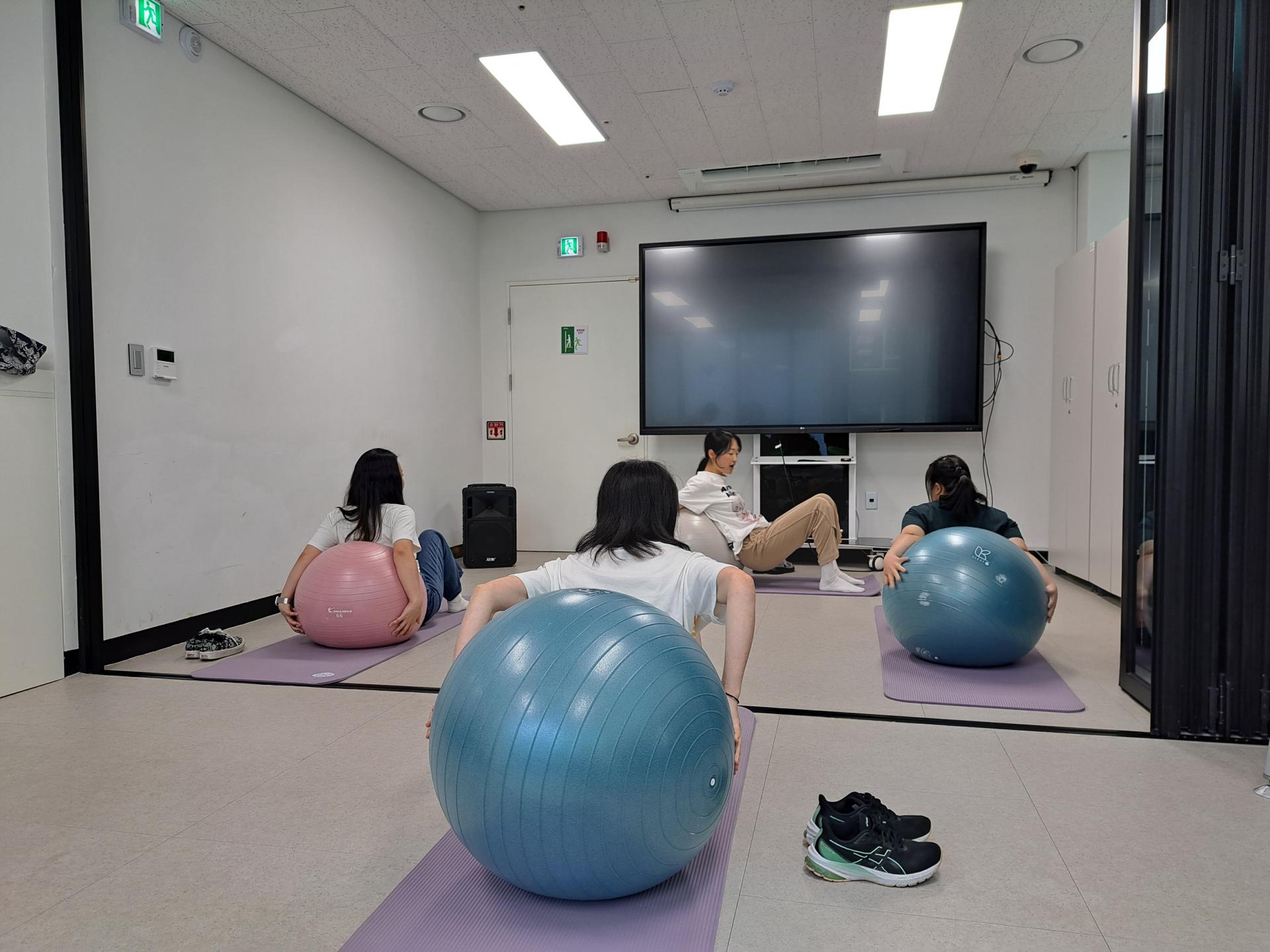 짐볼을 통한 유산소 운동으로 신체 온도를 올려줍니다.