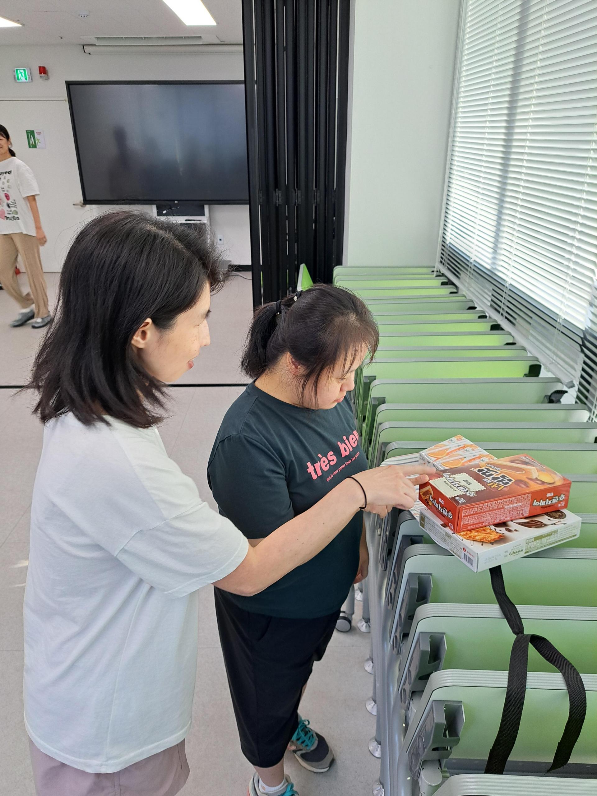 잠시간의 쉬는 시간에는 간식도 나누어 먹고요~