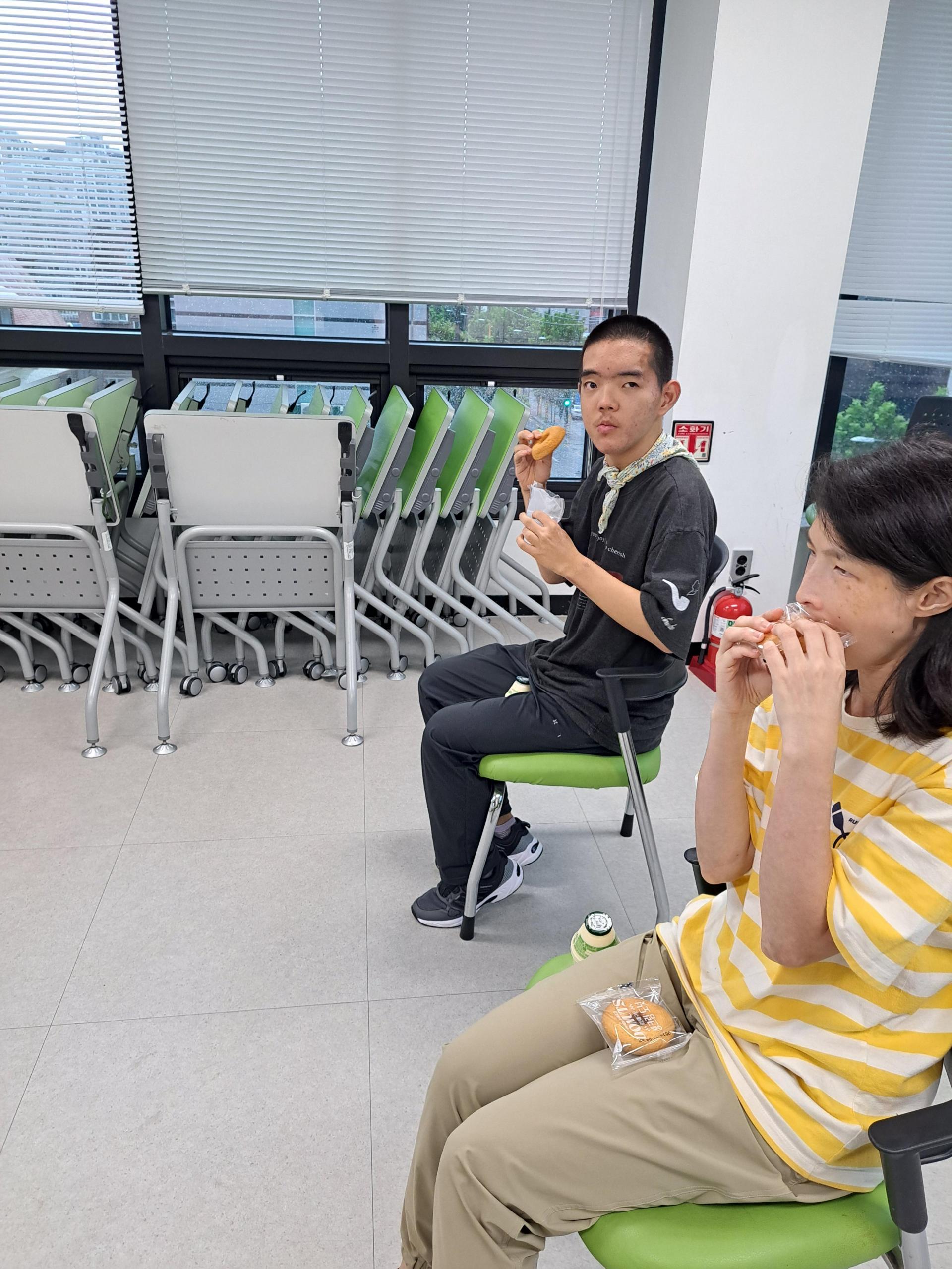 신체 온도가 따끈히 올라가며 잠시 쉬는 시간을 가지며 간단한 간식도 먹습니다.