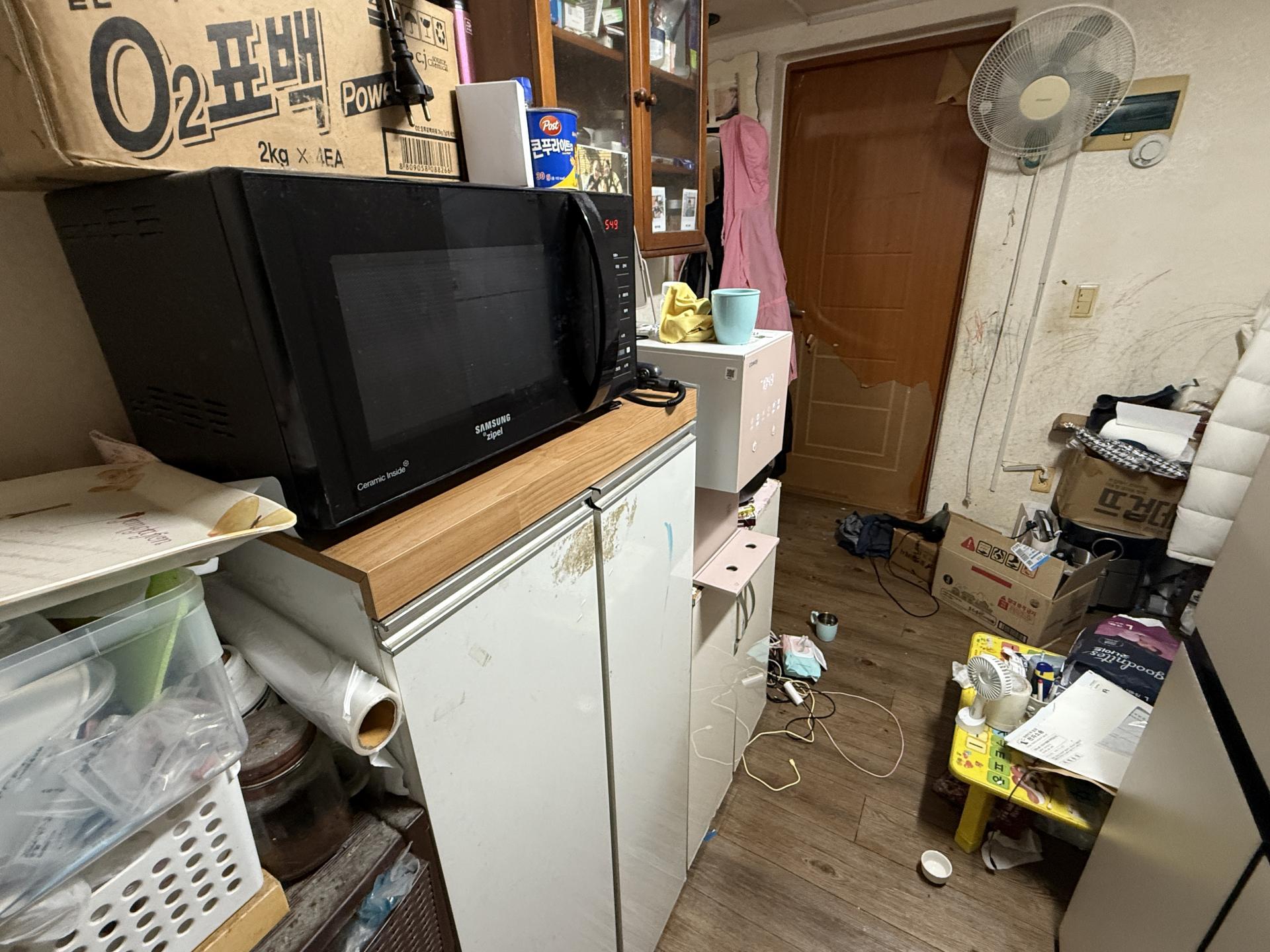 늘어진 전선, 잔뜩 쌓인 택배 박스에 가려졌던 부엌 공간 역시