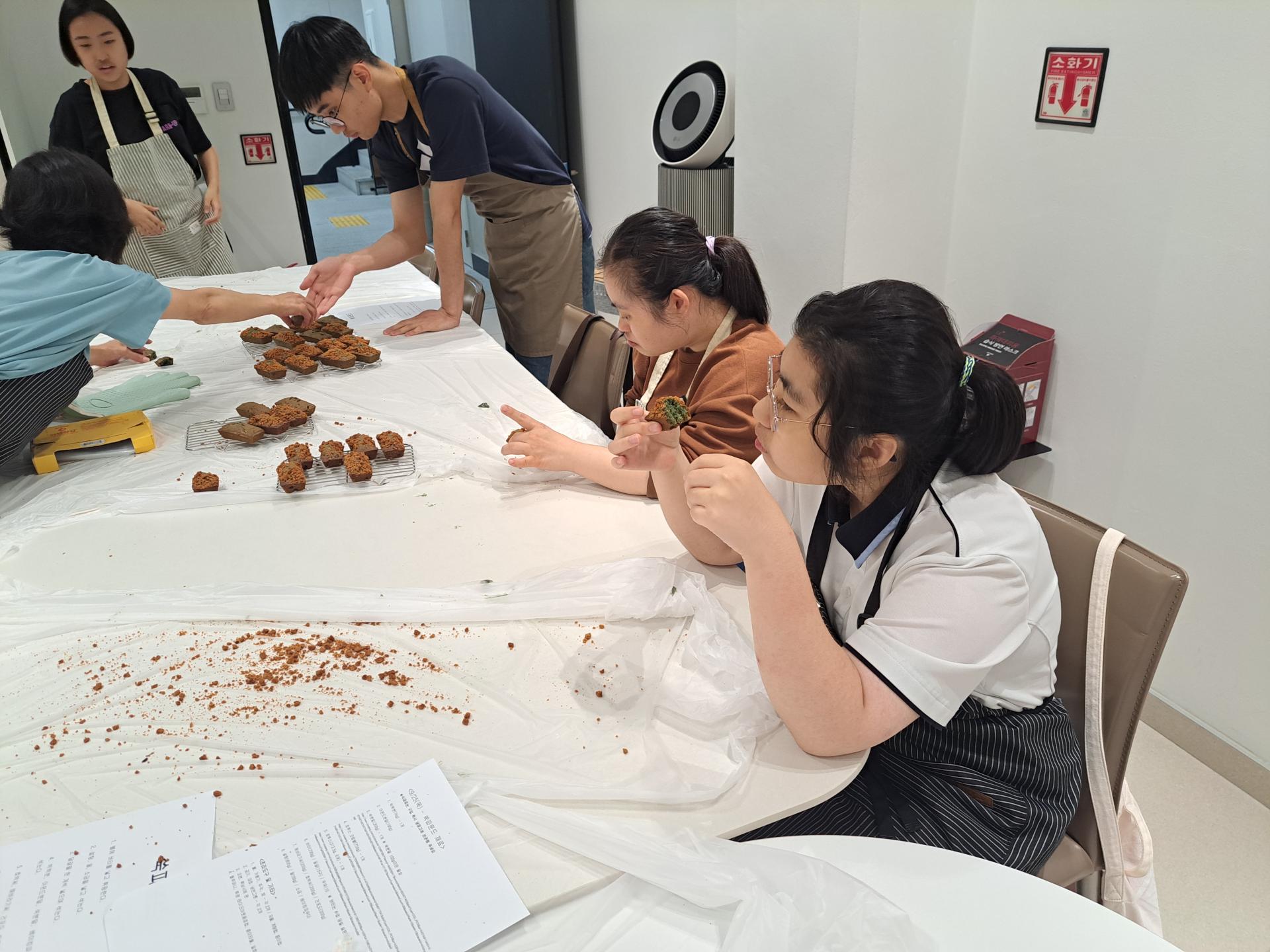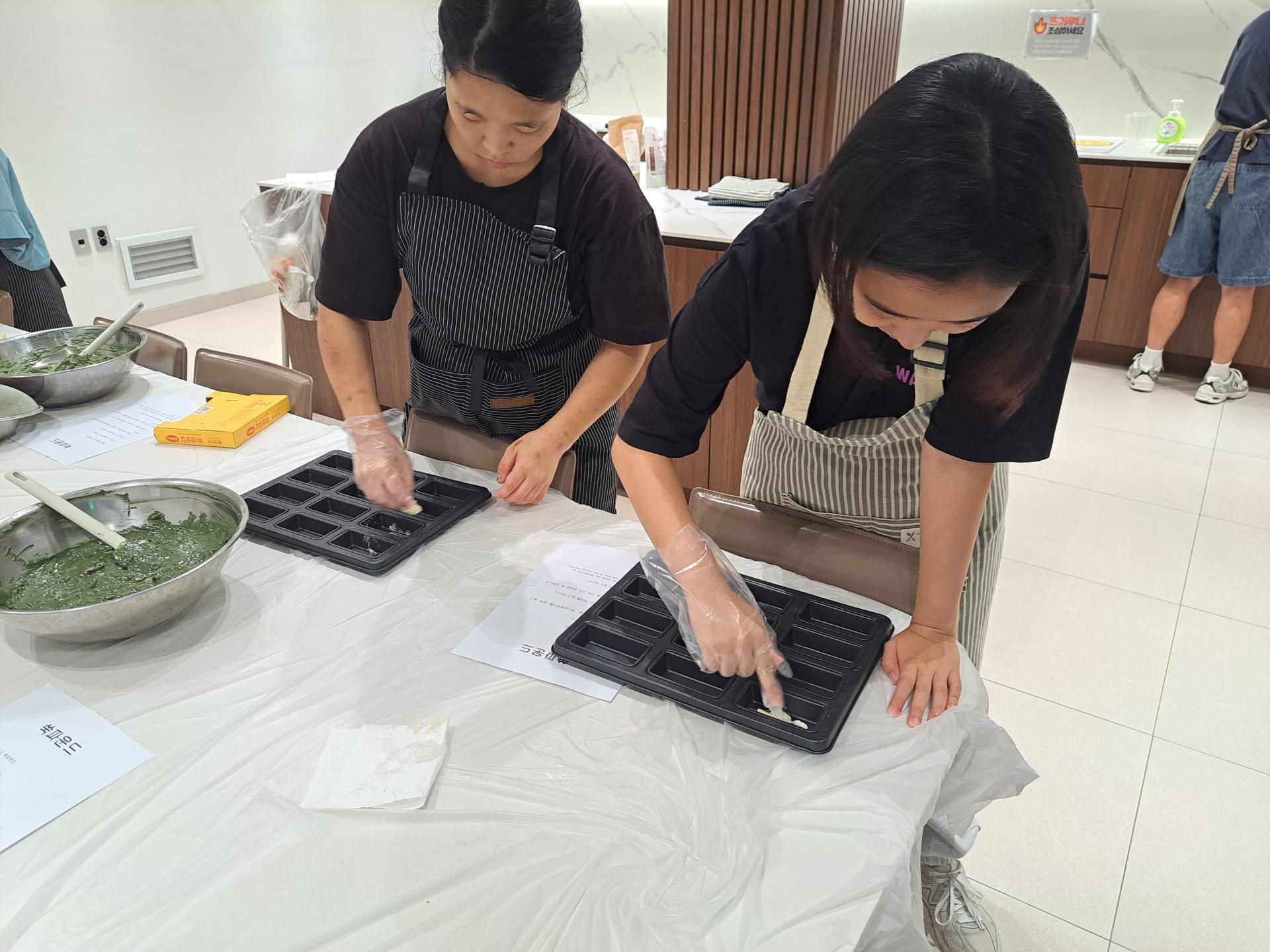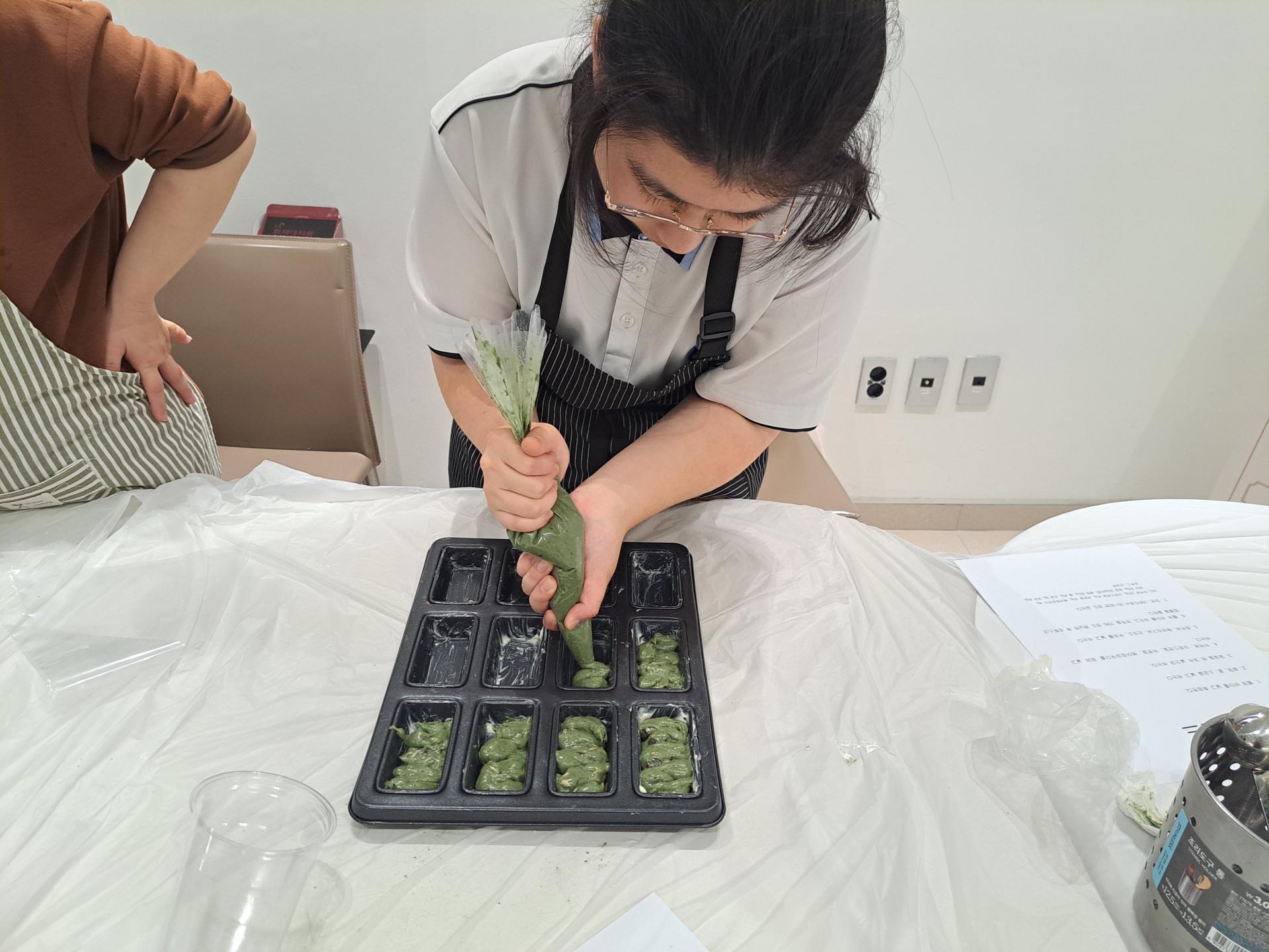 내가 만든 쑥파운드는 따끈할 때 시식도 해봅니다.