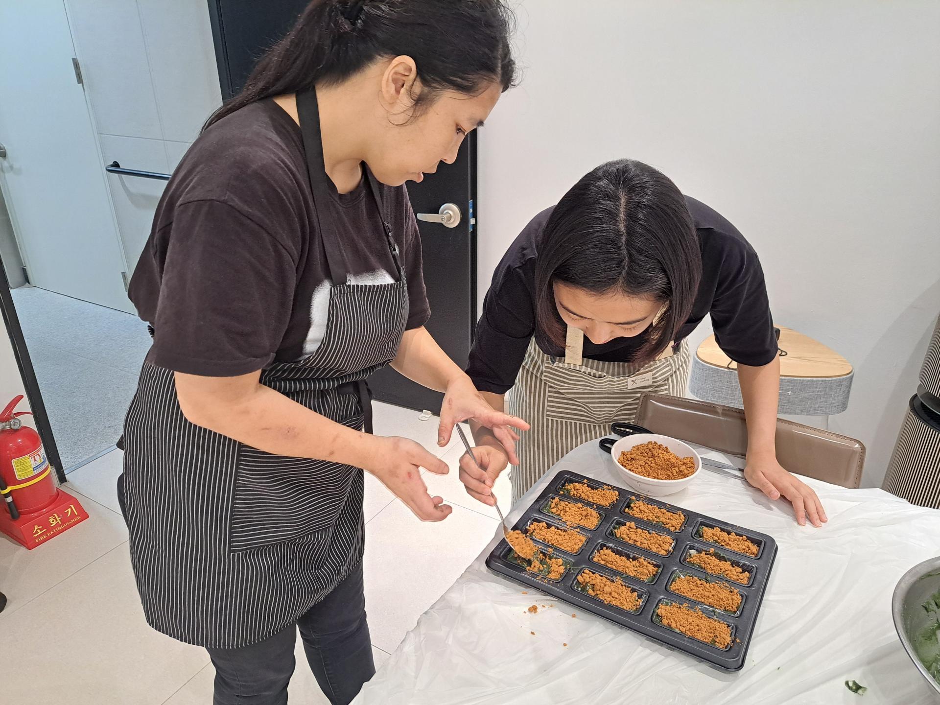 짤주머니에 반죽을 넣으면 팬닝할 준비 완료~