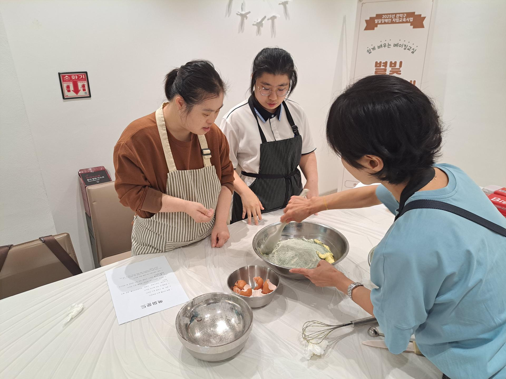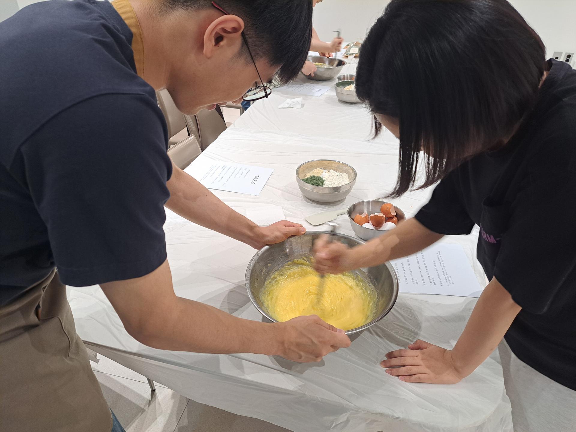 가루가 날리지 않도록 조심조심 섞어줍니다.