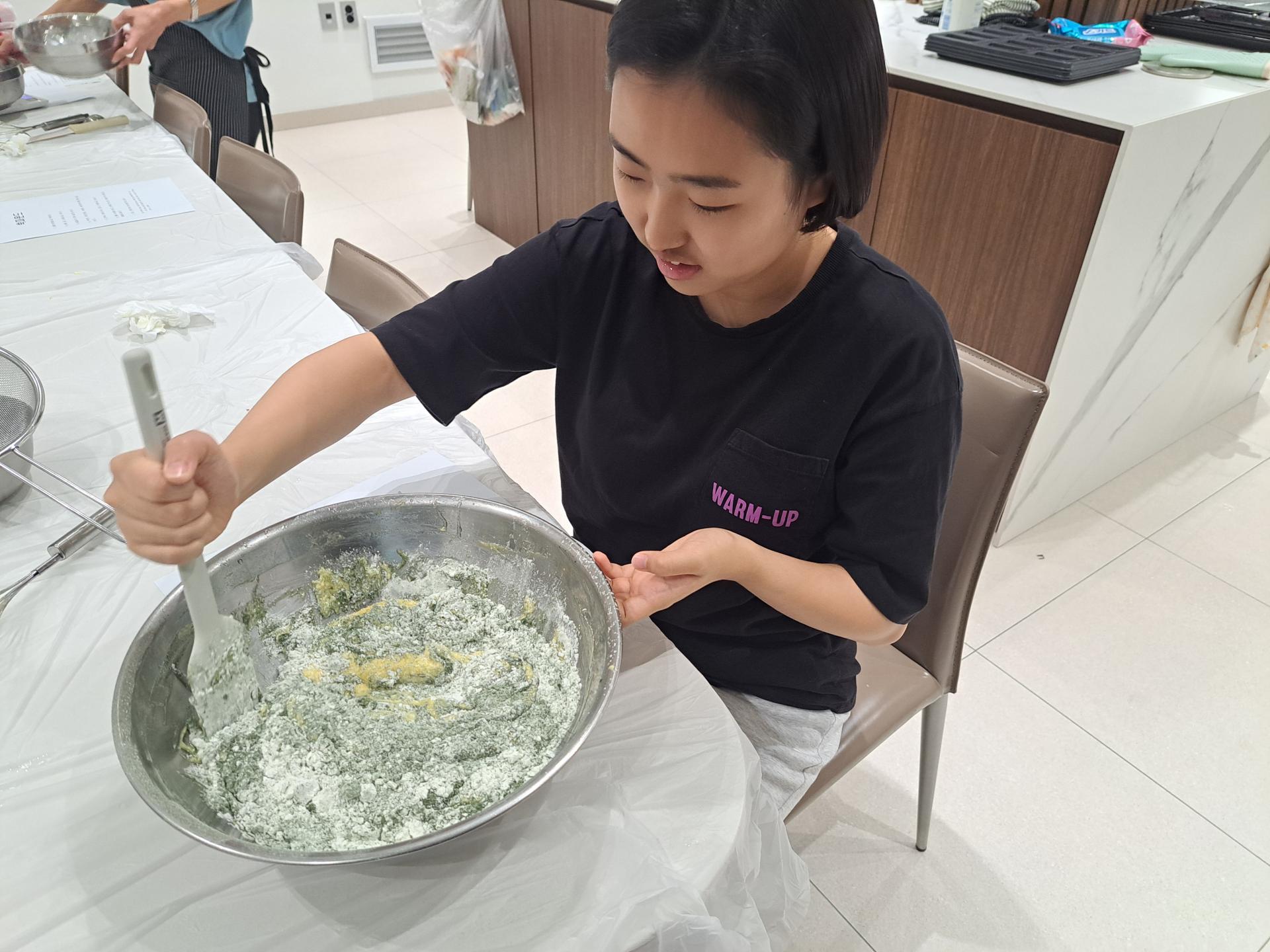 아몬드 가루, 밀가루 박력분, 베이킹파우더, 쑥가루와 같은 가루류는 체에 곱게 쳐주고