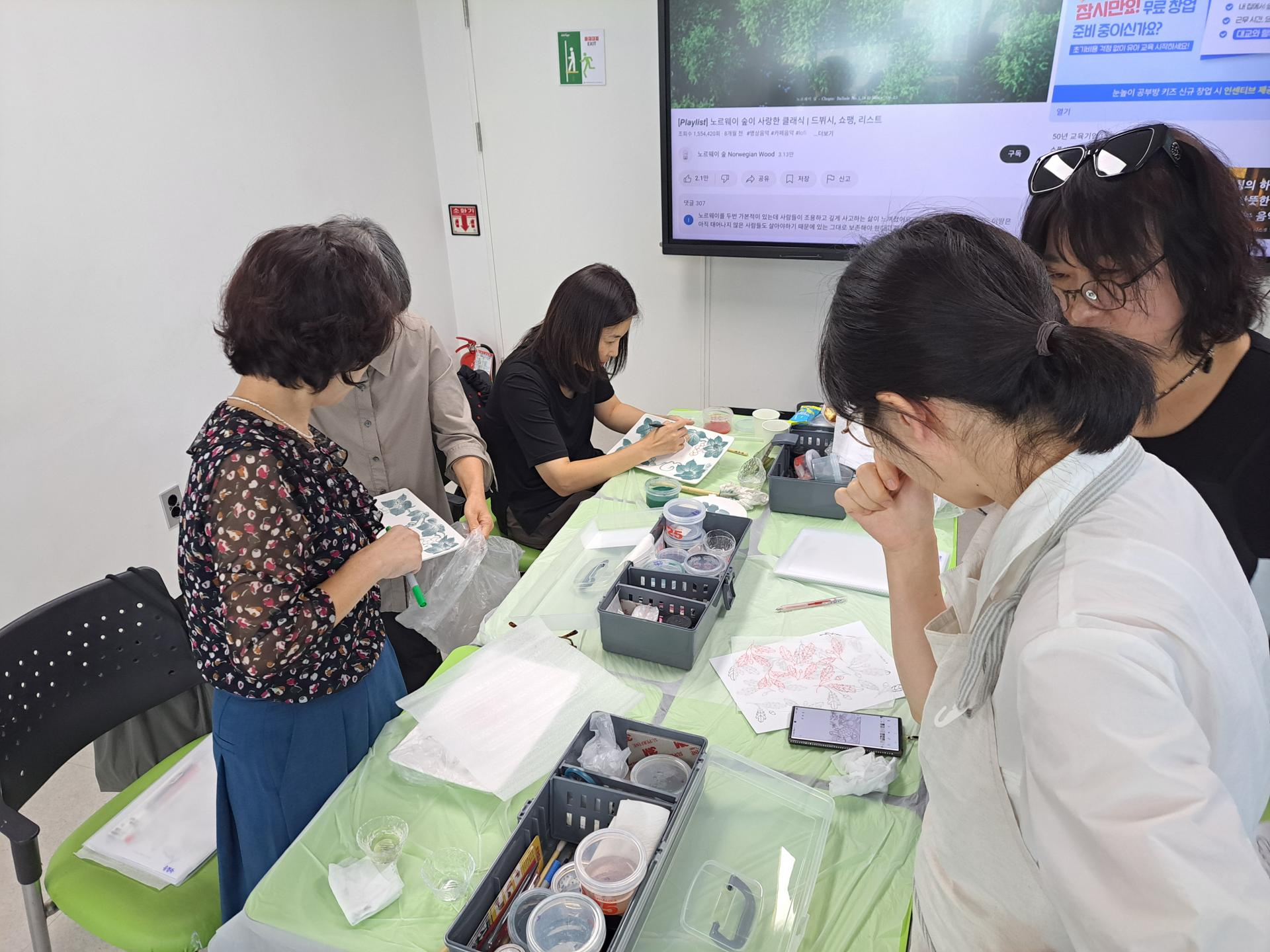 강사님과의 앞으로 도안 수정과 물감 채도를 정하고 채색방향에 대해 논의한 후