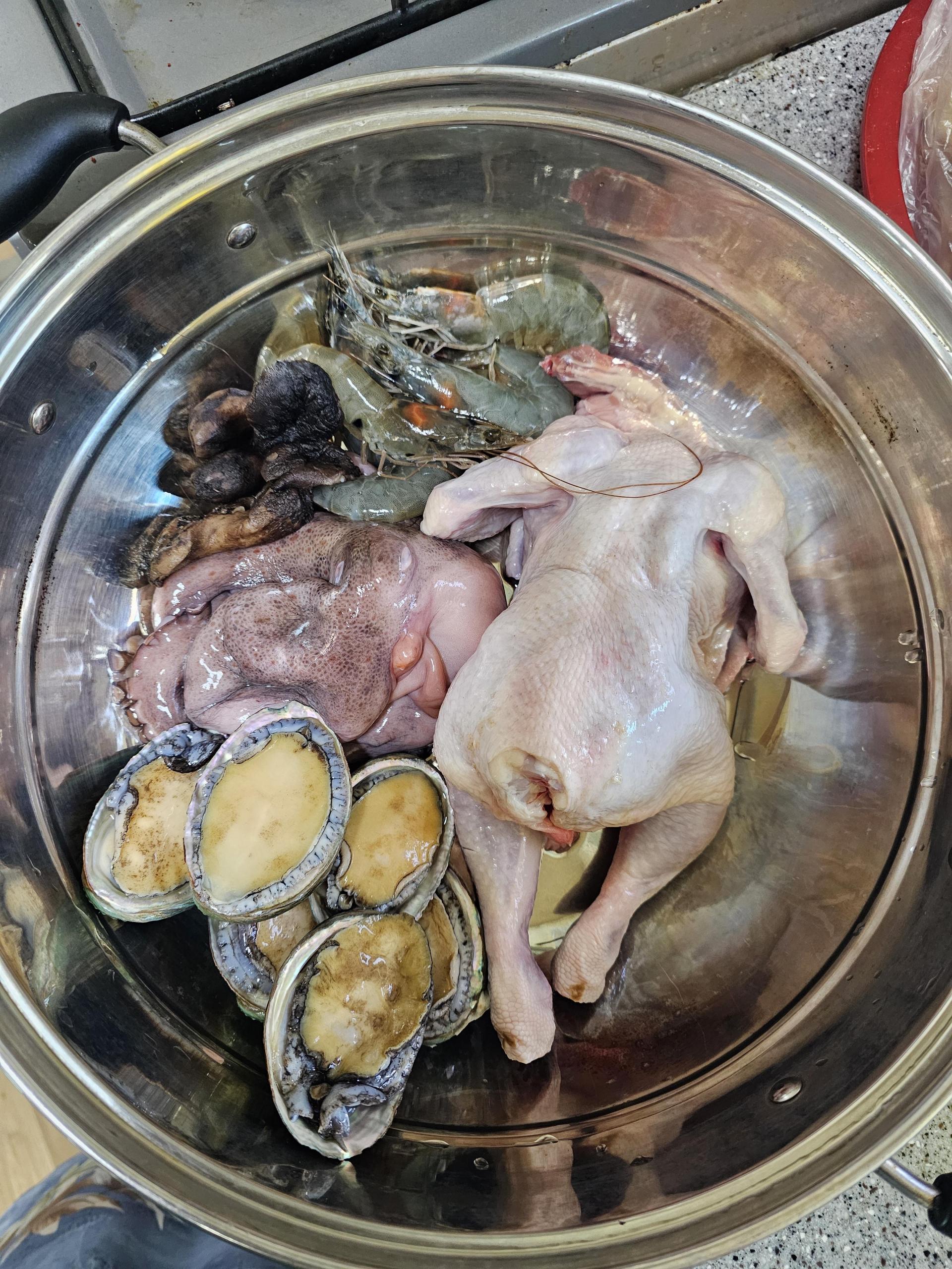 닭뿐만 아니라 각종 해산물을 함께 넣어 바다의 향기와 쫄깃한 식감으로