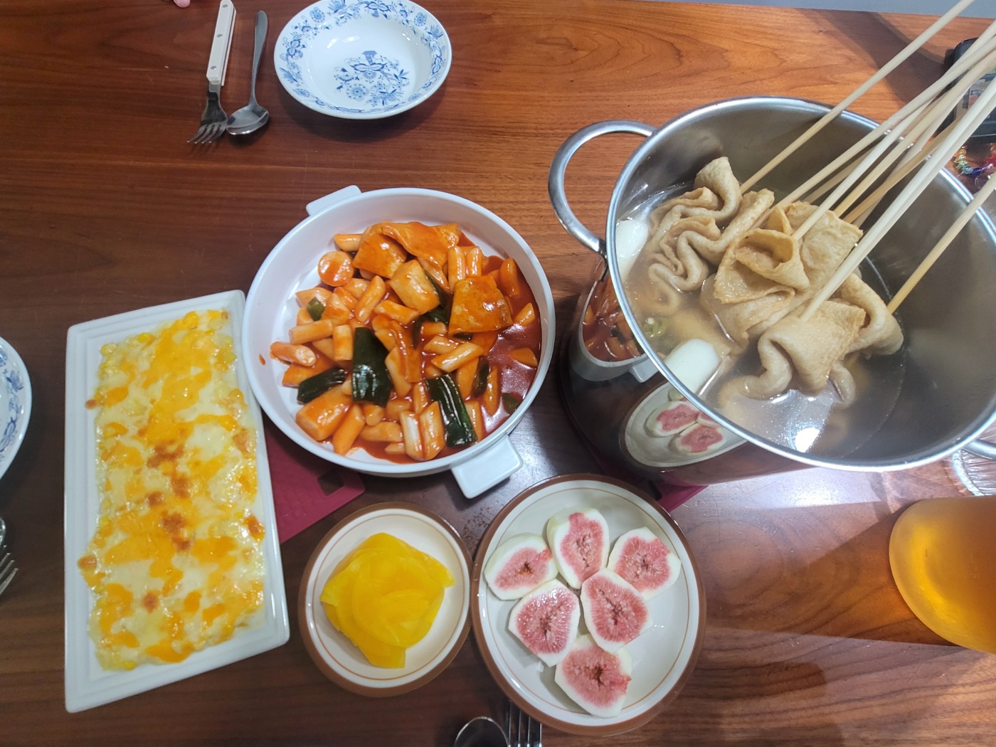 따뜻한 어묵탕과 매콤달짝한 떡볶이는 아버님이 요리하고, 콘치즈는 어머님이 요리하셨다고 합니다.