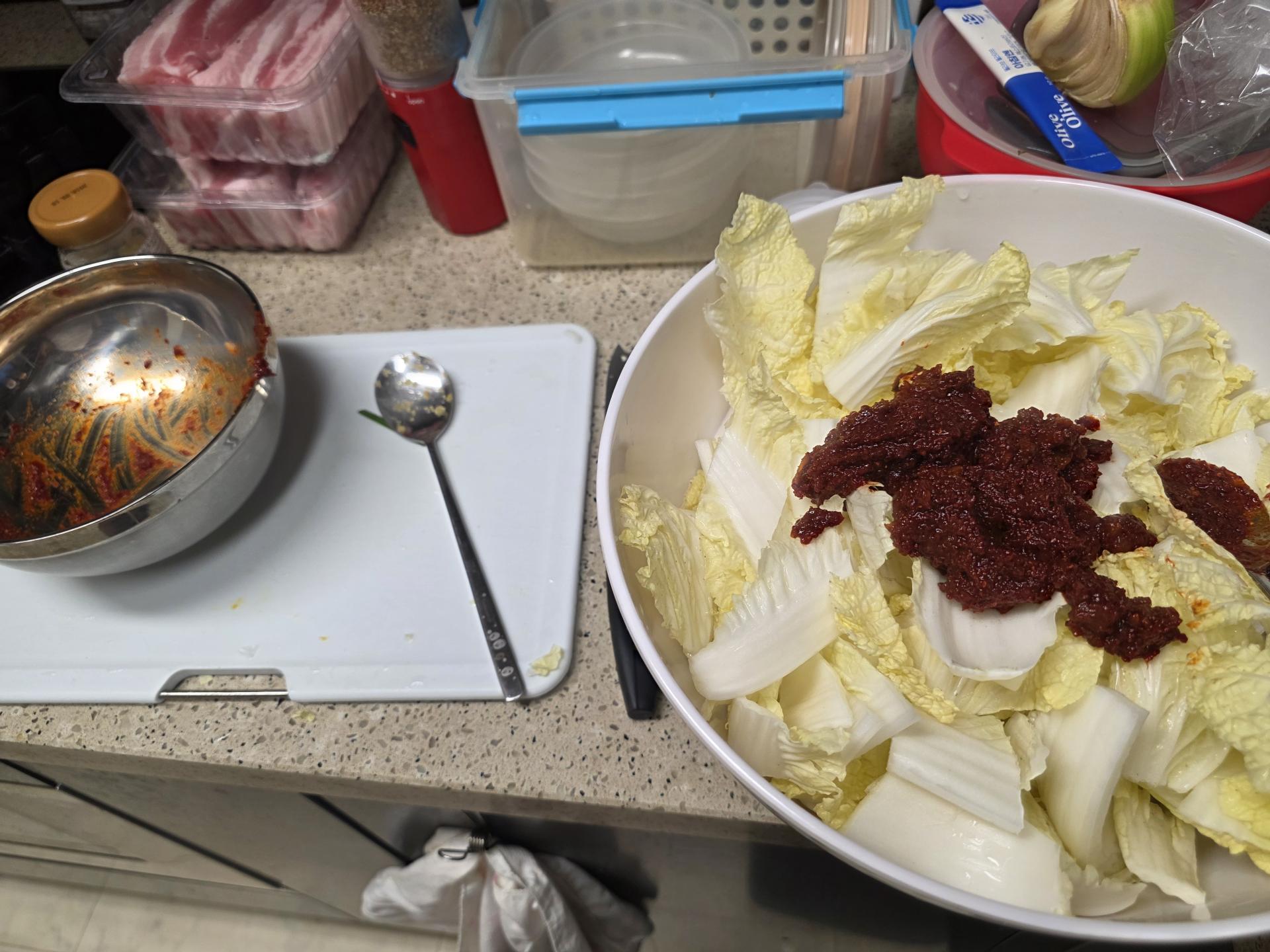 배추겉절이에 보쌈을 얹어 어른 아이 할거없이 싹싹- 그릇을 비우셨다고 합니다.